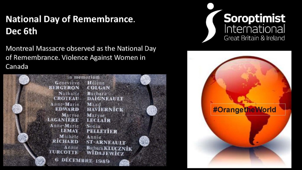 14 women studying to be engineers at the Ecole Polytechnique in Montreal, became the target of a warped misogynist mind. Soroptimists remember the Day and steel their resolve to attain #Generationequality this #16daysofactivism. #Orangetheworld to continue the struggle
