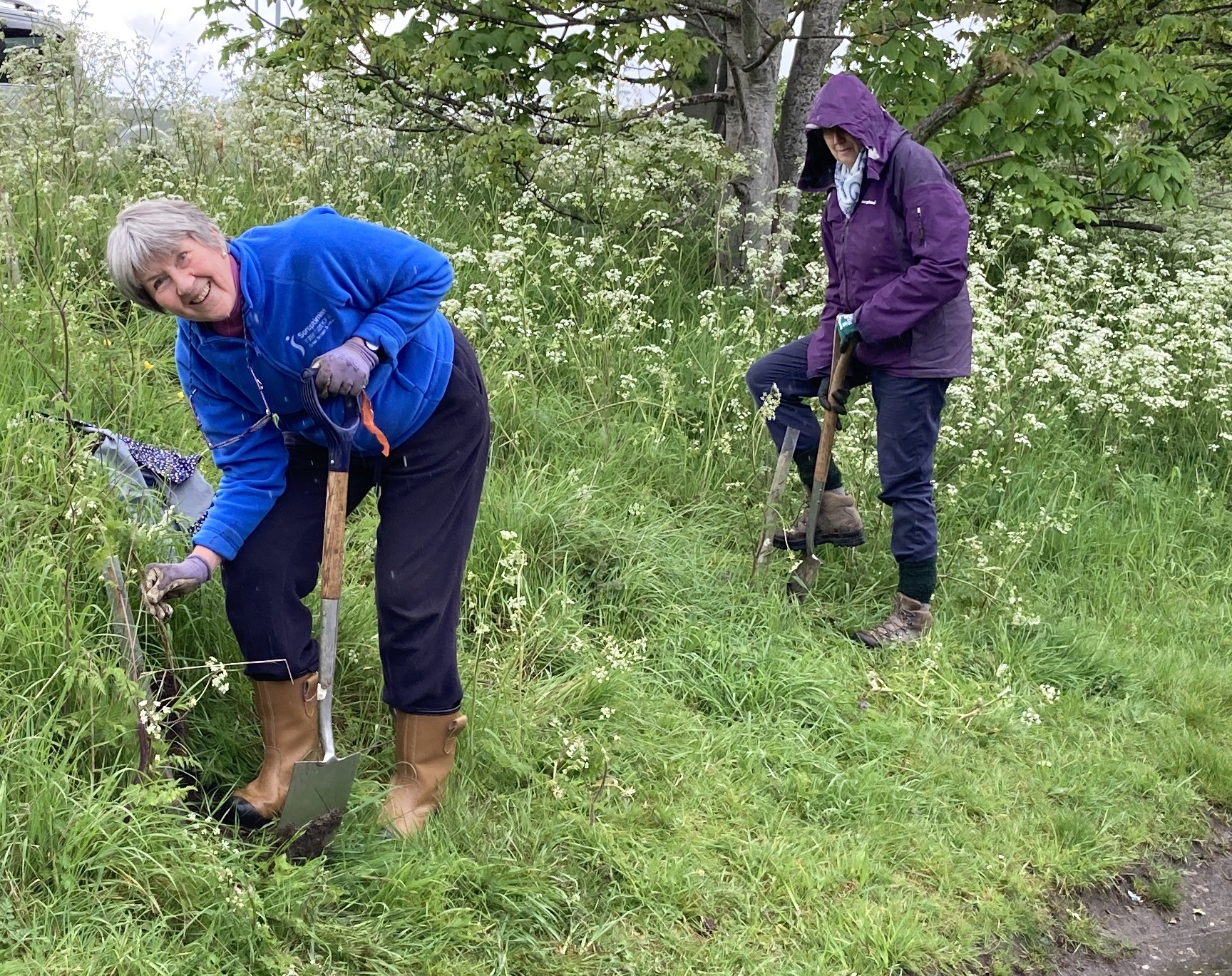 Six club members braved the rain to plant 15 saplings in Melksham to mark our Soroptimist organisation’s centenary this year. Clubs all around the Federation have been doing this to mark the occasion. Melksham was chosen for our first planting and a site in Bath has been chosen for the autumn. There was a mixture of hazel, crab apple and rowan saplings all provided by the Woodland Trust.