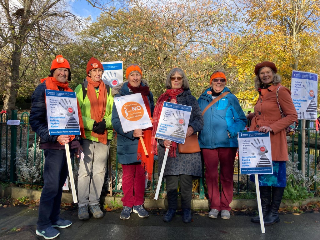 Clubs fron the South West regiona converged on Weston-super-Mare, and walked from the station through the town handing out ‘love me, love me not’ bookmarks and holding placards to mark the first day of 16 days of Activism of elimination of violence against women.