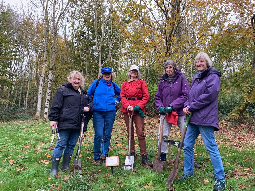 November 7, 2021Members from our club planted 18 service whips around Primrose Hill Community Wood in Bath to mark our Soroptimist Centenary. Clubs throughout the world hae been doing this to mark the occasion whilst helping the planet. We planted 18 to represent each member of the club. Luckly we had a husband who helped and guided us along the way.